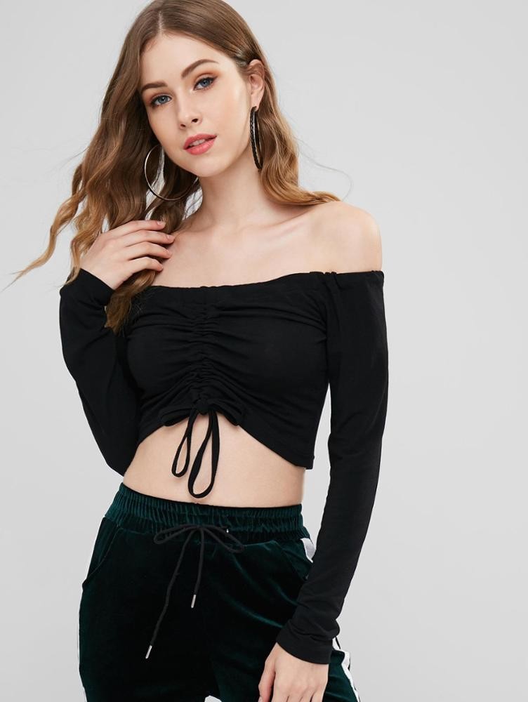 | Sleeve Length(cm): | Full | Product name: | Drawstring Front Crop T-shirt |